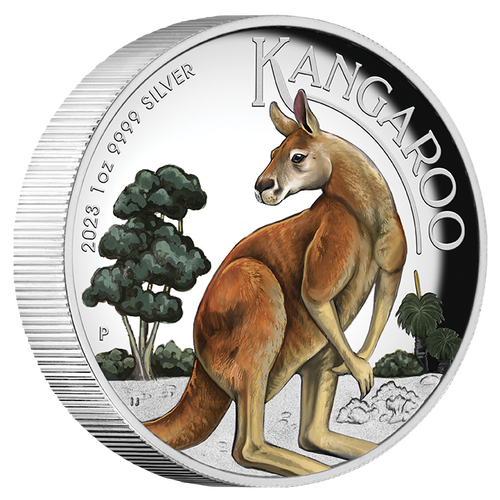 The Perth Mint will release no more than 5,000 of the Australian Kangaroo 2023 1oz Silver Proof High Relief Coloured Coin.