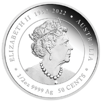 The coin bears the Jody Clark Memorial Obverse of Her Majesty Queen Elizabeth II supplemented with the dates of her reign '1952-2022', as well as the weight and fineness, and the monetary denomination.