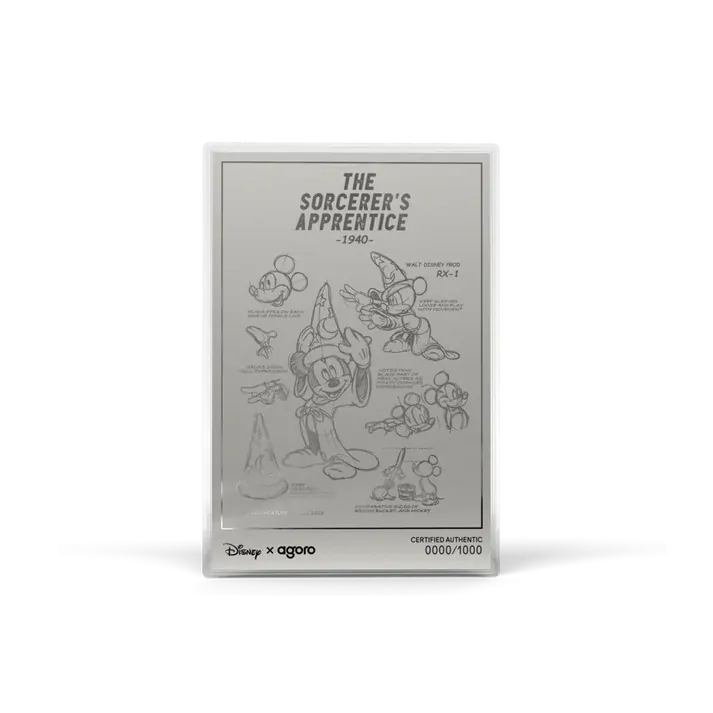 Since its spellbinding debut in 1940, Disney’s Fantasia has enchanted generations. Now, Agoro celebrates this timeless motion picture with a special precious metal combo-style collectible, an extraordinary tribute to Disney magic. Presented in dual-display packaging, this set includes:
