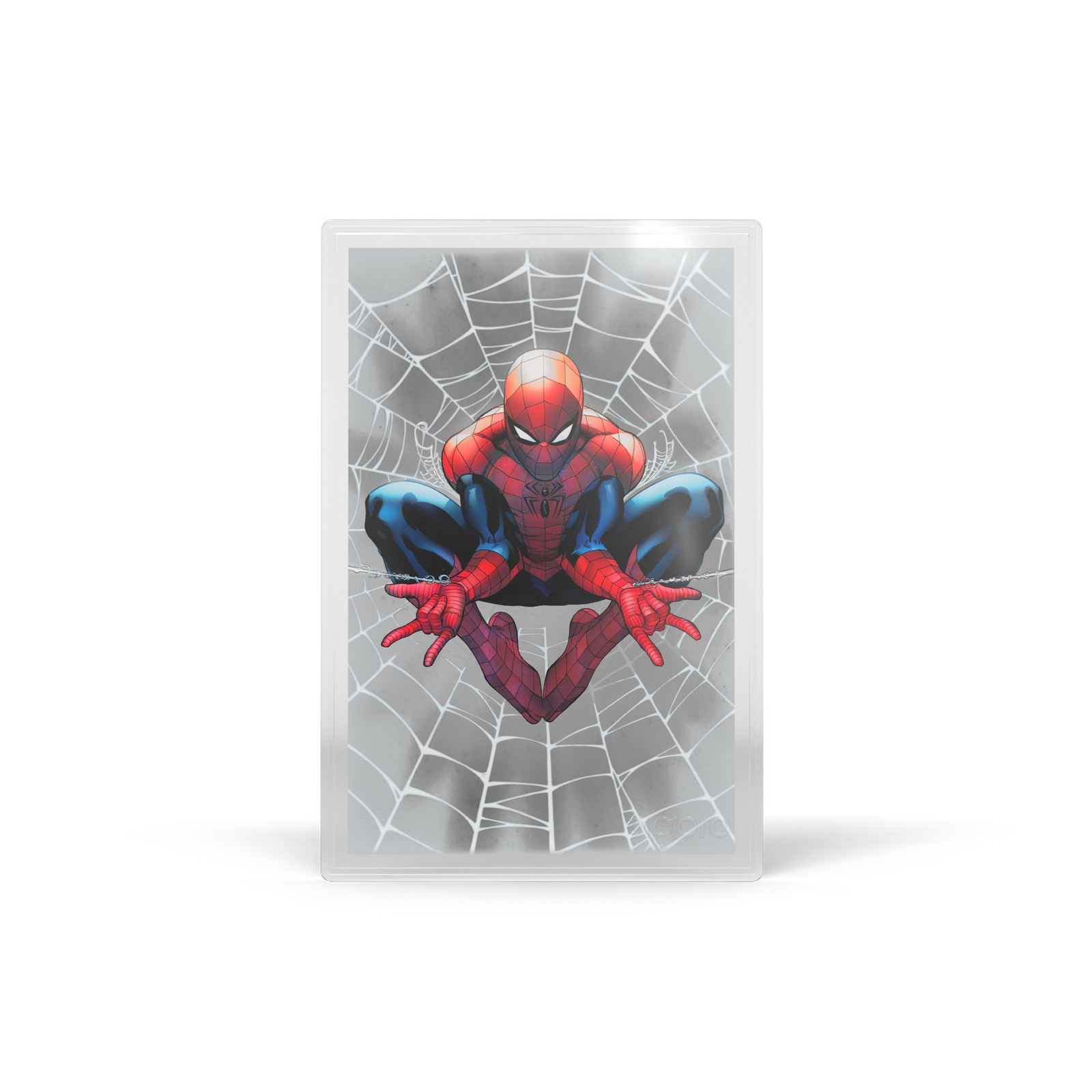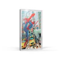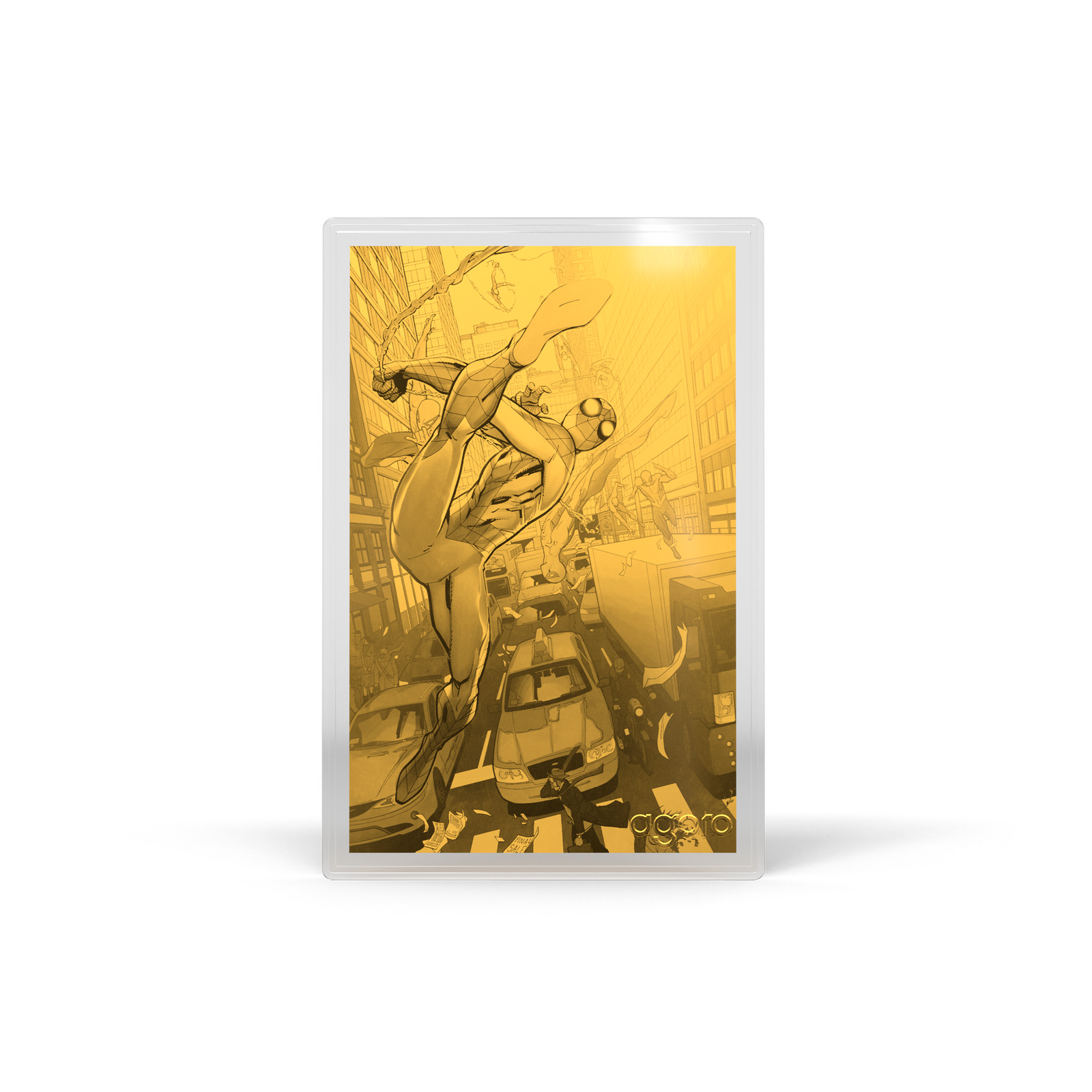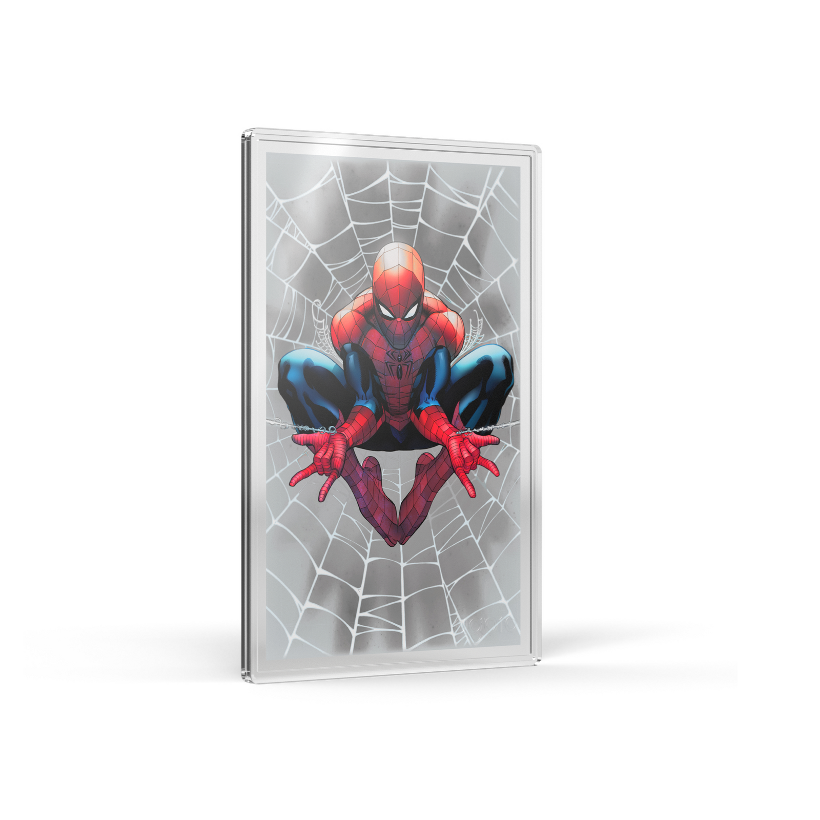 Depictions of Spider Man engraved on silver of gold foil.