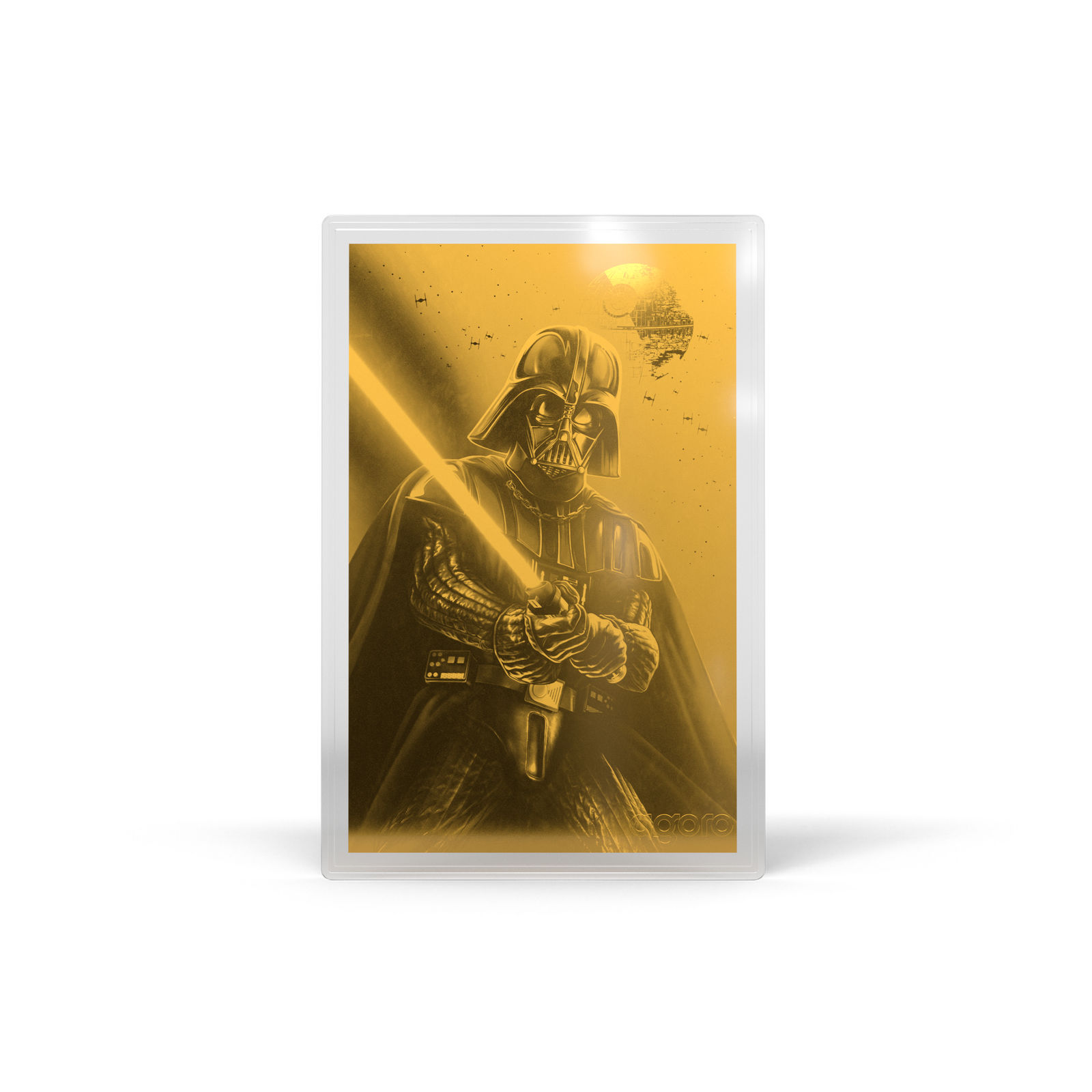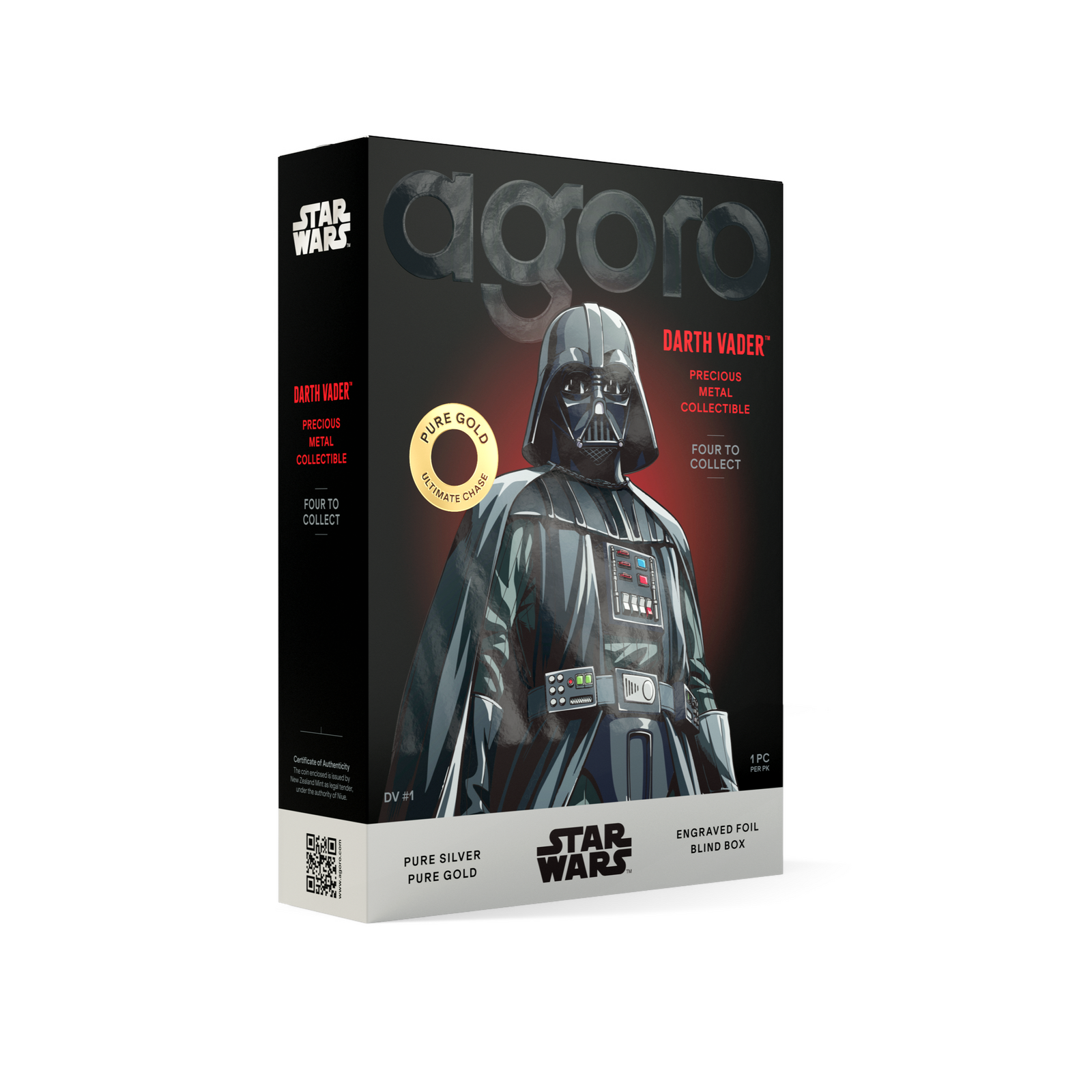 Tier 3 features Darth Vader fully engraved on silver. Tier 4 features the ultimate chase, Darth Vader fully engraved on 999 pure gold. Tier 1 odds are 69% odds per box, Tier 2 are 20% odds per box, Tier 3 are 10% odds per box, and Tier 4 has 1% odds per box.