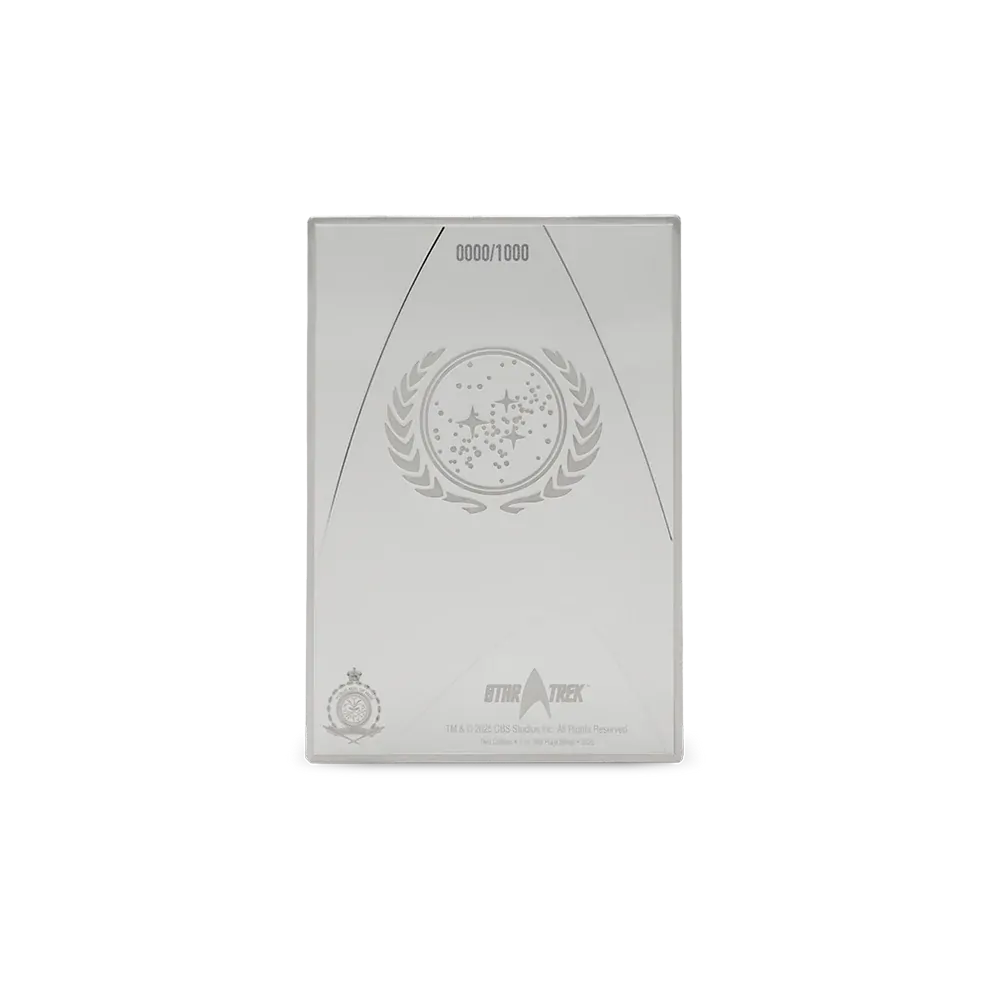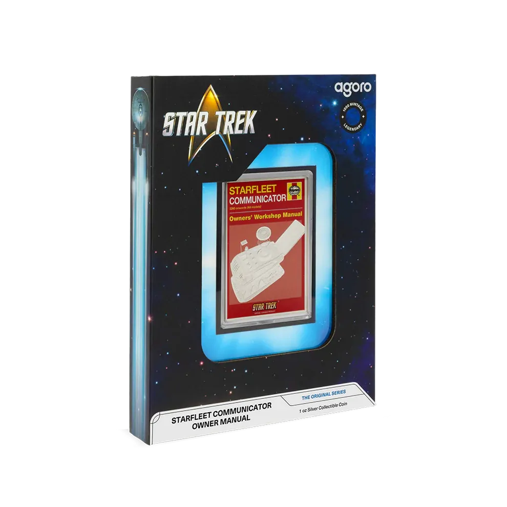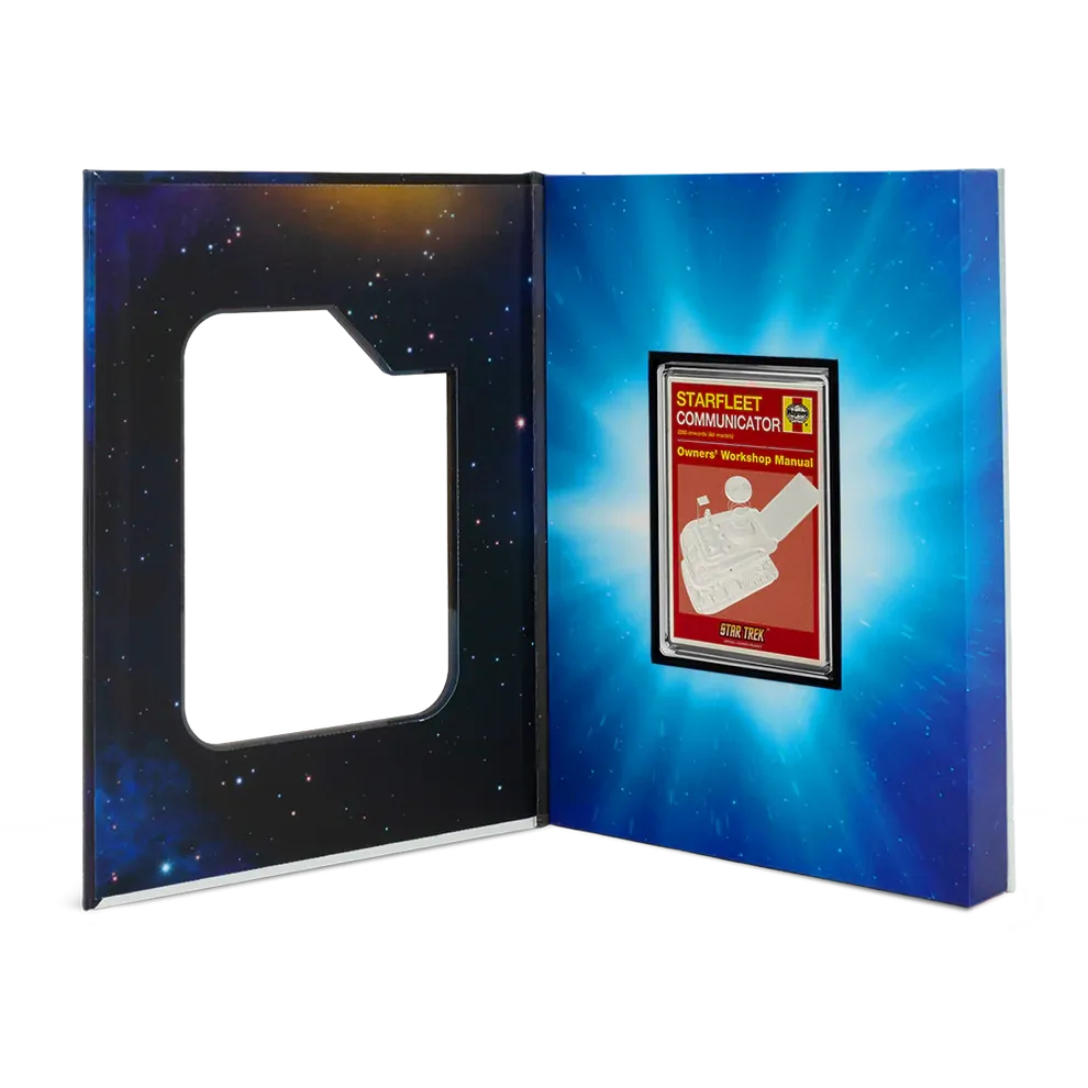 Now, as part of the Star Trek™ Owners’ Workshop Manual series, the Starfleet Communicator is immortalized in 1oz of 999 pure silver. The design features a bold retro-style manual cover, complete with engraved detail that captures the look and legacy of this legendary device.