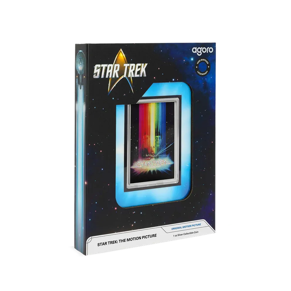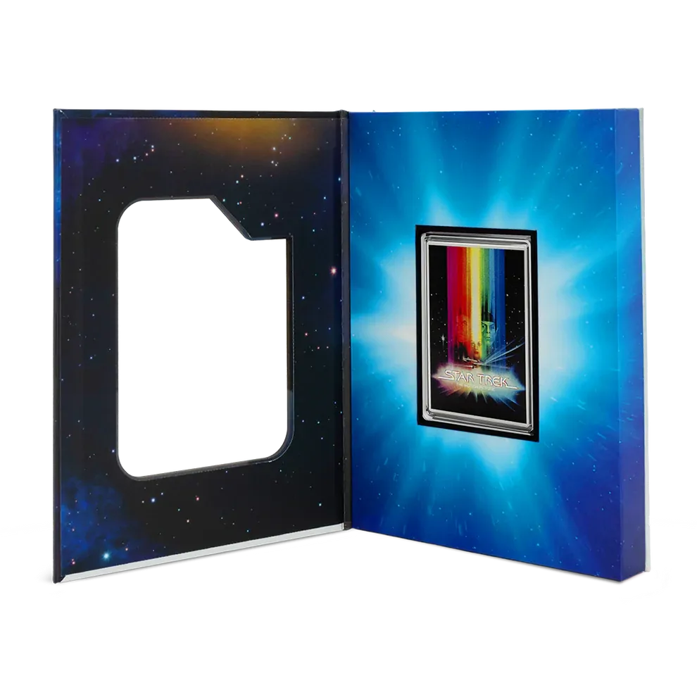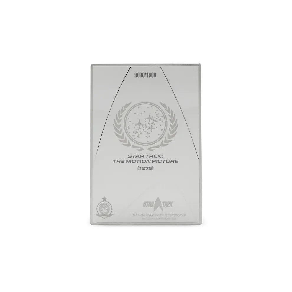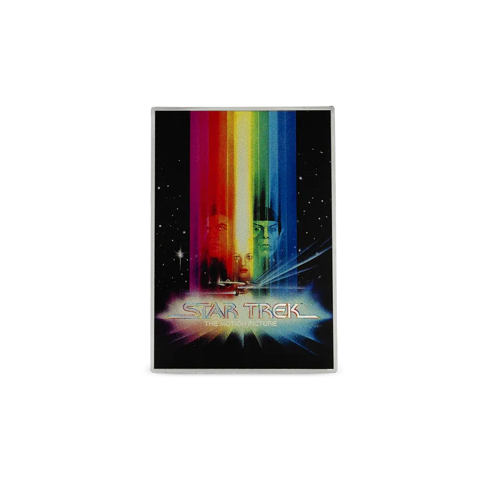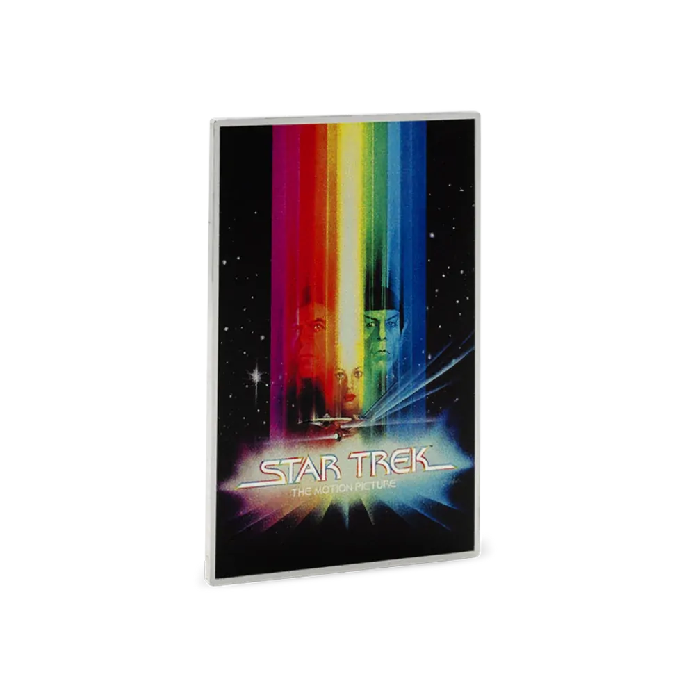 Recreates the Star Trek: The Motion Picture (1979) poster in vibrant color with frosted silver detail, struck on 1oz of 999 pure silver