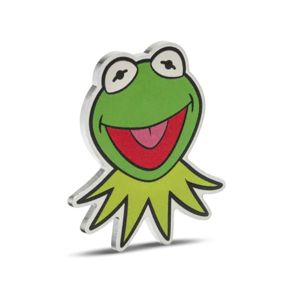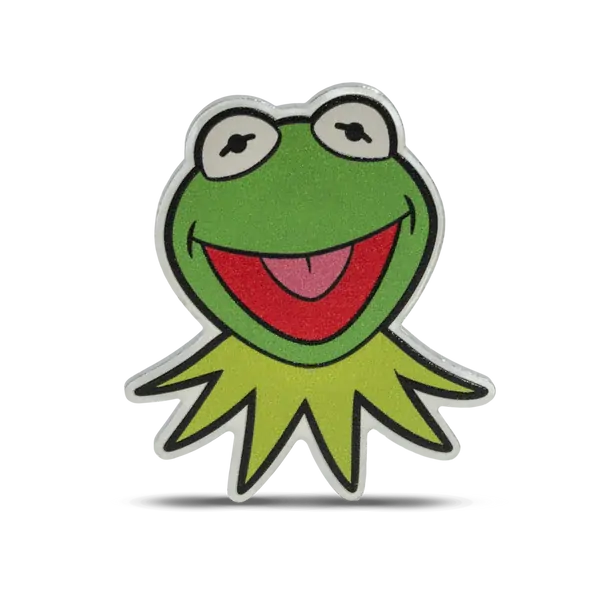 Shaped with vibrant color, the design depicts Kermit and his trademark collar.
