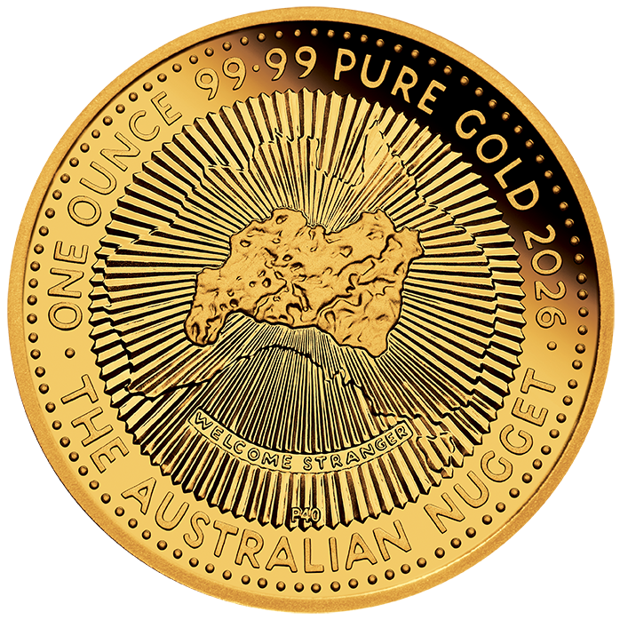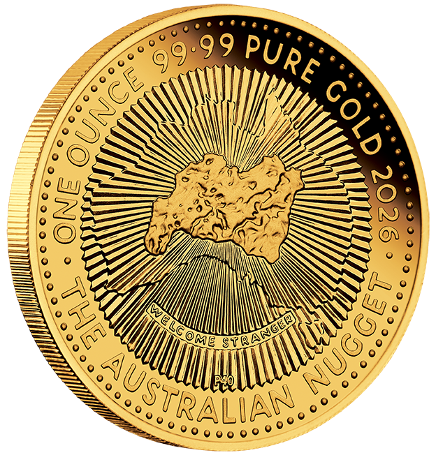 The coin’s reverse depicts the Welcome Stranger, the largest nugget ever recorded. Unearthed by prospectors John Deason and Richard Oates at Moliagul, Victoria in February 1869, their 2,284 ounces find was too large for the scales and had to be broken into three pieces before being weighed. The portrayal of the nugget is surrounded by a line drawing of the map of Australia and encircled by a ring of stylised sun rays. Within the design is the nugget’s name, and a ‘P40’ mintmark. Also included on the reverse is the inscription ‘THE AUSTRALIAN NUGGET’, together with the weight, purity and 2026 year-date. The coin’s obverse depicts the Dan Thorne effigy of His Majesty King Charles III and the monetary denomination.