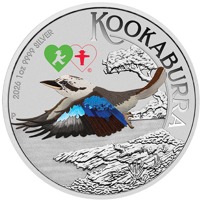 The coin portrays a coloured representation of a kookaburra in flight over a river, framed by lush trees and rugged rocks. The design features a privy mark depicting red and green Ampelmännchen, honouring the Berlin cult brand featuring traffic light men designed in East Germany during the 1960s. Included in the design is the inscription ‘KOOKABURRA’, along with The Perth Mint’s ‘P’ mintmark, and the coin’s weight, purity, and 2026 year-date.