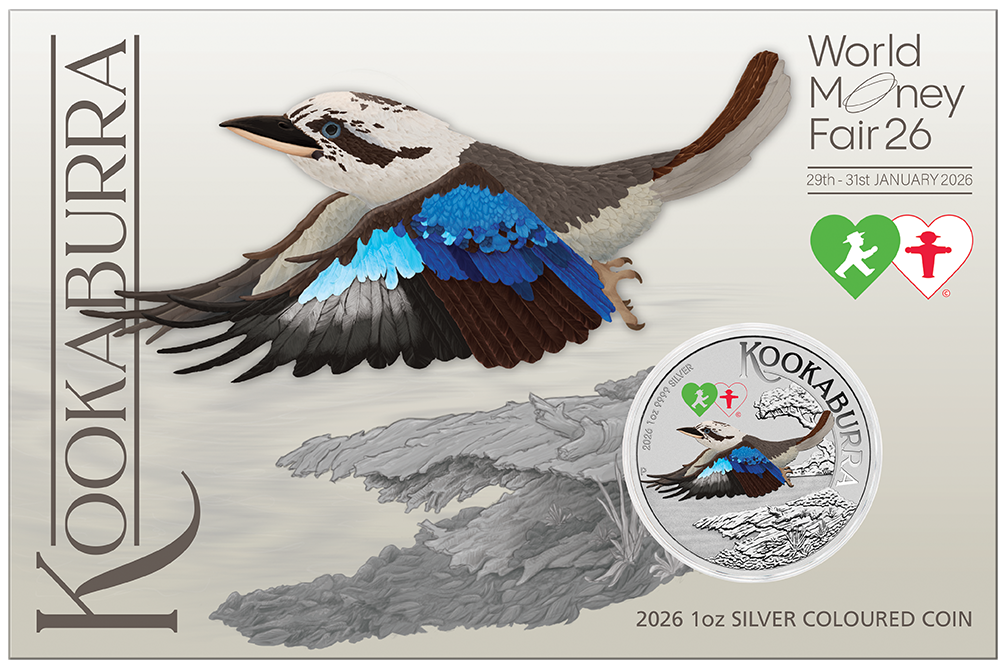 Here is a striking coin to mark the 2026 World Money Fair held late January 2026 featuring the 2026 Australian Kookaburra design in vivid colours.