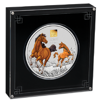 A spirited renditon to the auspicious lunar horse, this spectacular 1 kilo silver coin features a pure gold privy mark insert.