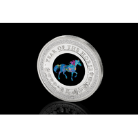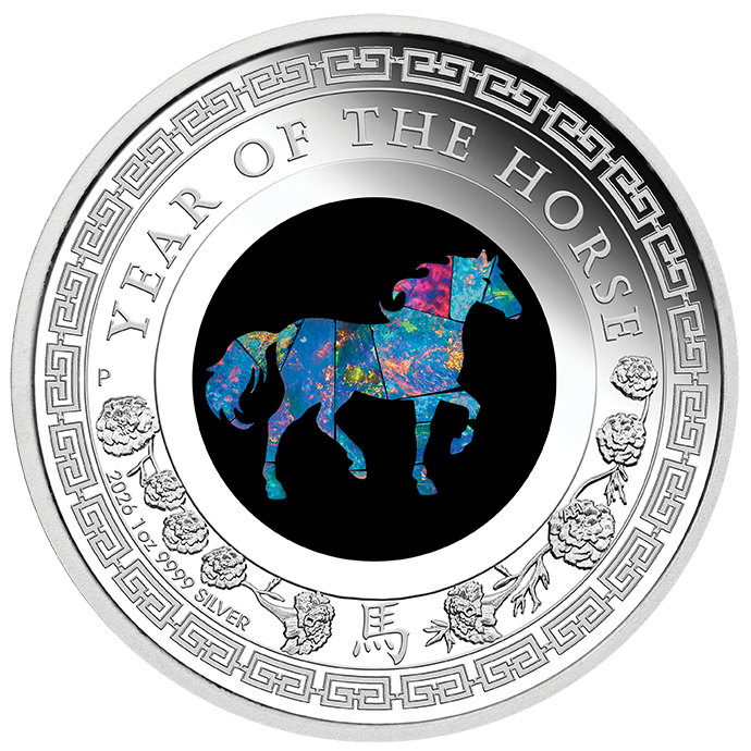The design also includes the inscription ‘YEAR OF THE HORSE’ and the Chinese character for ‘horse’ together with the 2026 year-date, the coin’s weight and purity, and The Perth Mint’s ‘P’ mintmark.