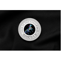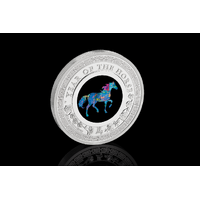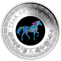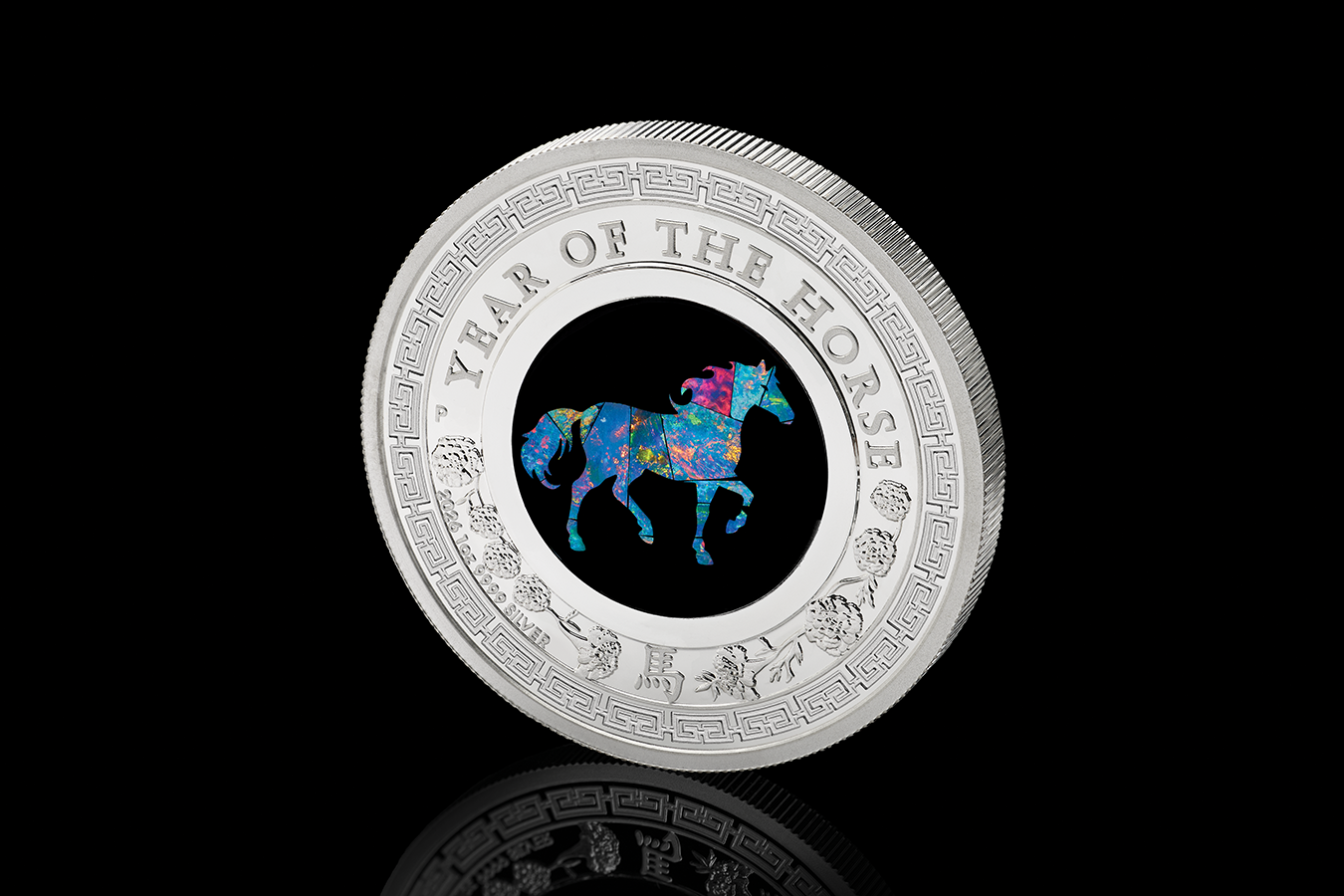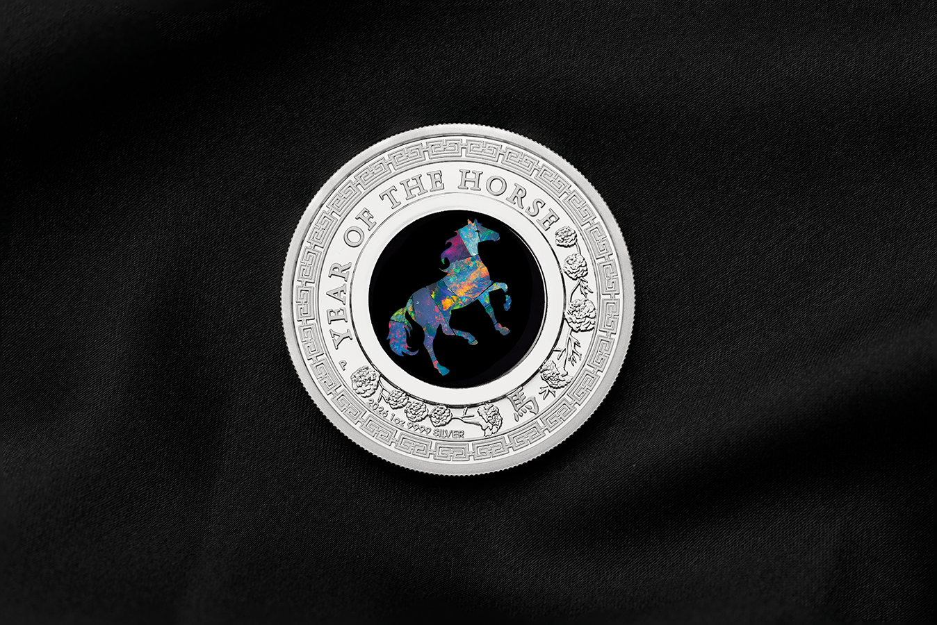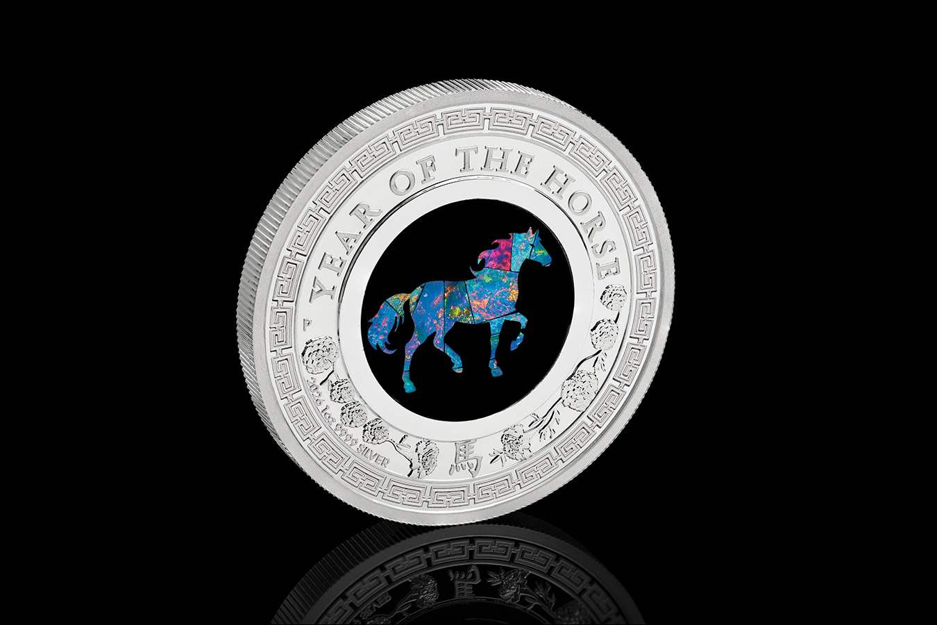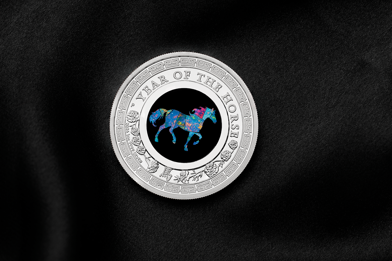 The coin’s reverse incorporates a circular panel featuring a horse detailed in pure Australian opal. Struck elements include intricate patterning with stylised depictions of marigold, a plant traditionally considered lucky for those born in the Year of the Horse.