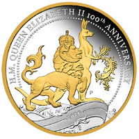 It showcases a lion and a kangaroo standing side by side, a powerful symbol of the enduring bond between the United Kingdom and Australia. Both the lion and kangaroo, as well as the coin’s outer rim are gilded in 24-carat gold. Surrounding the design is the inscription “H.M. QUEEN ELIZABETH II 100th ANNIVERSARY”, accompanied by stylised dots, the 2026 year-date, and The Perth Mint’s ‘P’ mintmark.