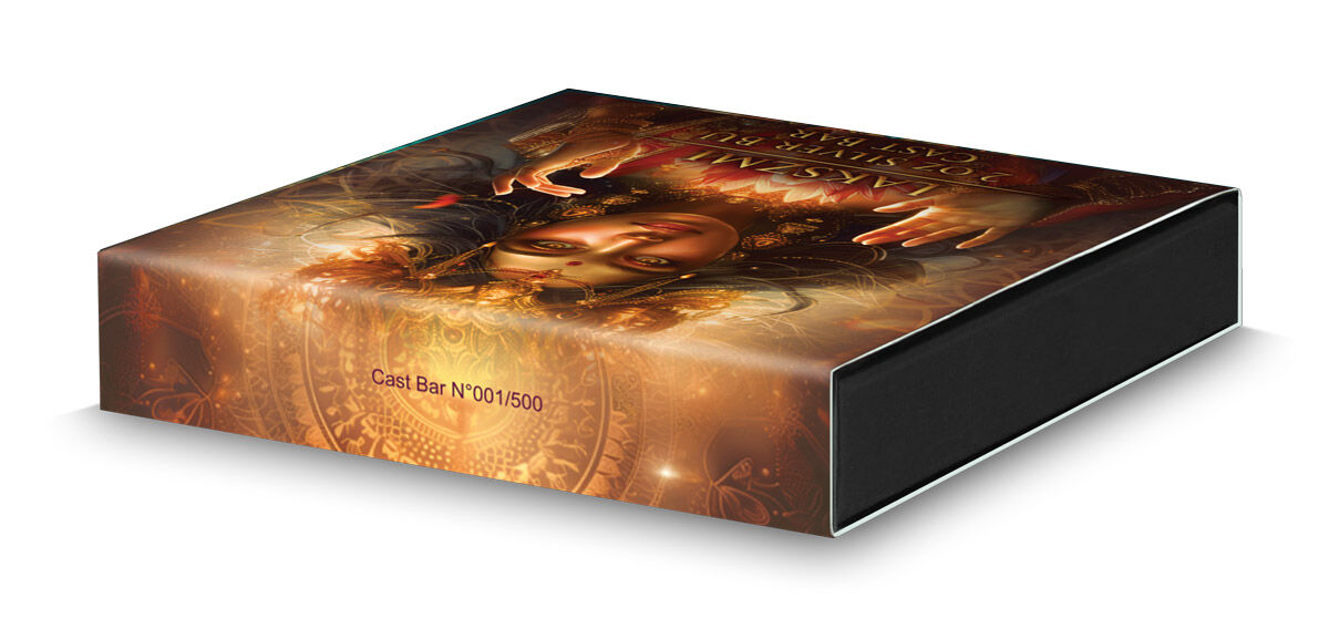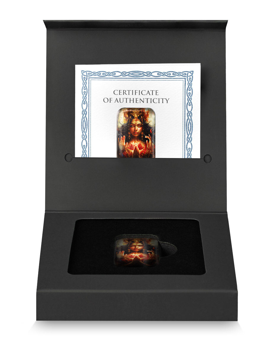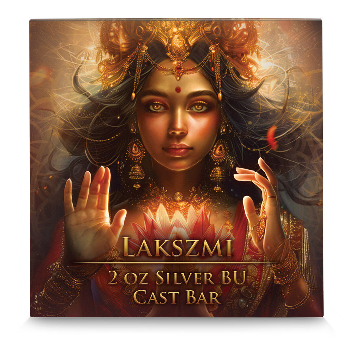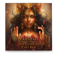 The Diwali: Lakshmi 2 oz Ag 999.9 Cast Bar is presented in an elegant black paper box, adorned with subtle gold hot stamping. Colourful sleeves feature motifs inspired by Hindu tradition and iconography, harmonizing with the symbolic designs of the silver bars. The result is a cohesive and refined presentation – perfect as a gift or for collectors. Each product includes a Certificate of Authenticity, confirming its originality and the highest production standards.
